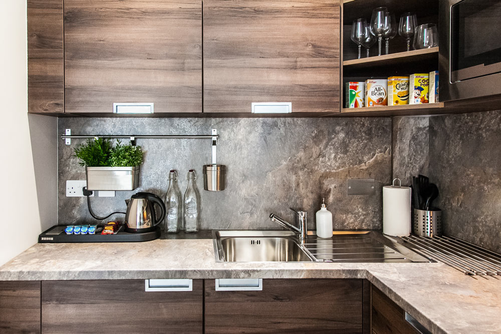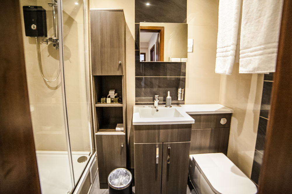 plan kitchen and living area. Cotton bed linen and towels are provided. The en-suite
